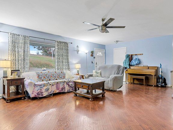Enjoy the Open Floor plan in this beautiful Raised Ranch Home. This home features birch wood kitchen cabinets, stainless steel appliances, lovely counter tops, hard wood flooring, and double wood burning fireplaces. This home also offers a primary bedroom with En suite, ceramic dual head shower, and double closets. Get back to nature while you enjoy the gorgeous backyard from the deck! Lots of additional living spaces are added to walk-out lower level by adding over sized great room, which is where the second fireplace is located along with a full bath. Solar panels convey with property.