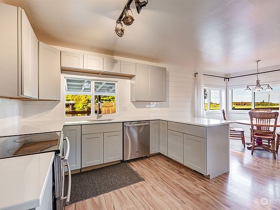 Welcome Home to this beautiful Remodeled Farmhouse! Its original charm is still intact with Gorgeous, new modern touches such as waterproof laminate flooring, New Kitchen Cabinets, New Quartz Countertops and Title Backsplash, water heater is one year old. Roof was done less than 10 years ago. Bring All your toys!! The 26x40 detached shop has a new roof, gutters, and Paint. The shop also has its own 200amp service and is wired for a 60amp Generator! RV parking and so much room for more!!! BRAND NEW SEPTIC was just put in! Fruit trees, Majestic Mountain views, and Farmland and Tulip fields surround your own beautiful paradise! You will enjoy beautiful sunsets and crisp fall mornings from your new adorably cozy farmhouse in no time at all!