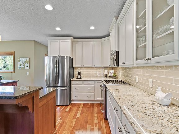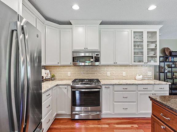 Clear you calendar to tour this gorgeous home in a highly sought after neighborhood. With an abundance of natural light, hardwood flooring, beautifully updated kitchen, this two-story home on a cul-de-sac lot that backs to a peaceful pond is a perfect spot to start your next chapter. The vaulted primary bedroom with 2 closets, one being an oversized walk-in, and a spa like ensuite bath is sure to please. Marvel over the gorgeous kitchen that boasts an enormous island wrapped with granite, sleek stainless appliances, and enameled cabinets. Grab a cup of tea and stroll outside to relax on the deck overlooking the tranquil pond and mature trees. Retire to the lower level to relax in front of the stone fireplace watching your favorite show. Bonus, the wet bar is conveniently located just steps away. This home home has been meticulously care for and is sure to please.
