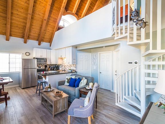 This is a furnished one bedroom and a loft and an extra sleeping loft. Sleeps up to 8 persons Master Bedroom has a King bed Loft has two bunk beds Extra sleeping loft has two beds Brand new remodeled Kitchen and bathroom. Has new Stove/Oven, Refrigerator, Dishwasher, microwave Three flat screen smart TVs, and Wifi New Tankless Water heater in unit. Washer and Dryer in unit Adjacent to Huntington Harbor, unlimited free use of paddle boards, kayaks Tenant pays for Gas, electric, water, Cable TV, Wifi, Trash