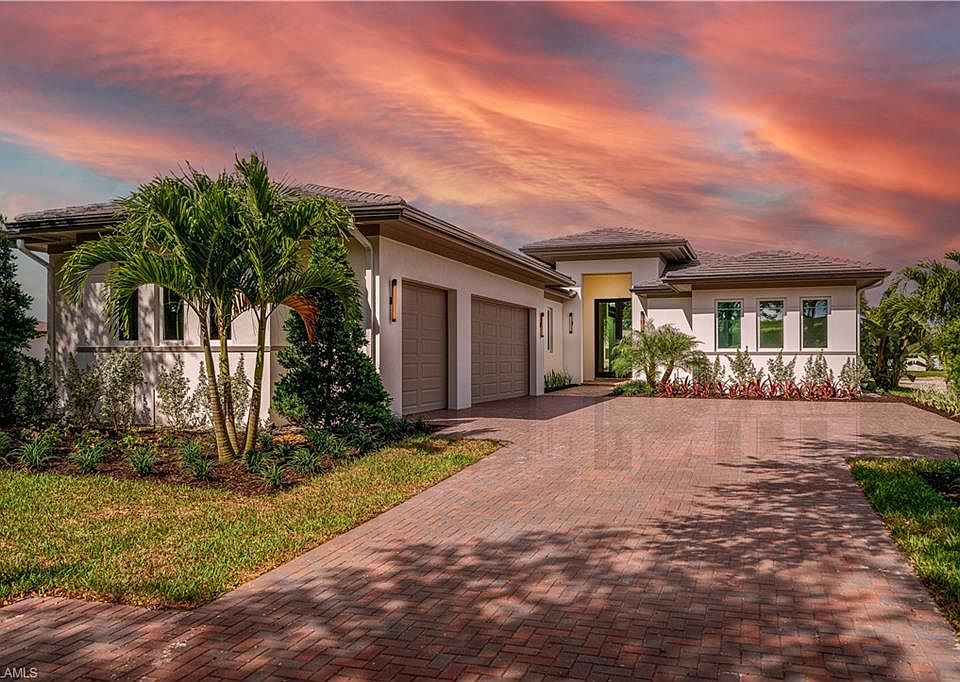 UNDER CONSTRUCTION and due for completion early 2025. The Mallory Model, by London Bay Homes, offers one of its latest contemporary architectural floor plan designs. Located in the maintenance-free living neighborhood of Cabreo in Mediterra, this home features an open concept floorplan with an adjoining spacious great room, gourmet inspired kitchen and dining room that leads to the covered outdoor living area. Designed with 4 bedrooms/4 bathrooms plus study along with a 3-car garage, the view from this home offers sparkling lake, fountain and SUNSET views. The Master Suite has dual spacious walk-in closets, stunning master bath finishes and direct access to the custom designed pool with sun shelf, spa and fully equipped outdoor kitchen and fire table. This beautiful home is due to be completed in 2024.