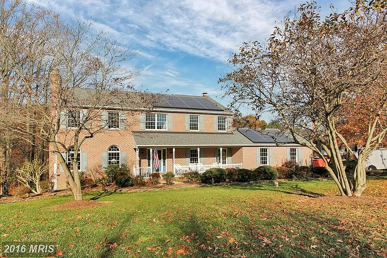 Nestled in a quiet cul-de-sac you'll find this wonderfully maintained Brick colonial with covered front porch and Large Deck overlooking the woods, Side load garage, Freshly painted, wood flrs, 2 Fireplaces, New appliances, L/L, walkout w/custom bar and pool table, pellet stove, F/bath. M/Bdrm, w/walkin closets and soaking tub and shower. Two zone heating. Go Green with Solar. NO HOA