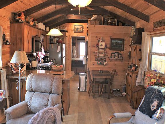 Adorable Tiny home on 2.87 acres In the heart of Ruby country in the Smokey Mountains. Sitting at over 3000 feet elevation you won't even need air conditioning. The Cabin Has many upgrades including stainless steel appliances and whole house water filter, washer and dryer, Double pane argon windows and upgraded radiant ceiling with ceiling fan. Propane gas heat and electric bill runs around 40 to $100 dollars a month depending on the climate. The property features 2 springs, 8-10 storage shed, fruit trees and many flowers That bloom all year. Deck is 600sqft and is built to code.