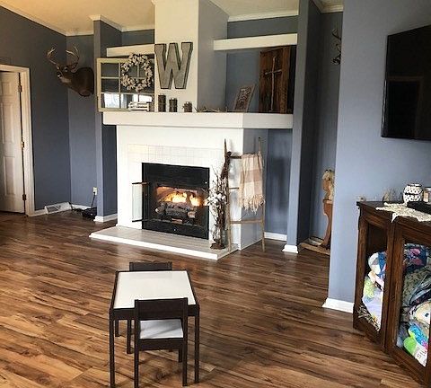 - Garden Tub, Dryer Connection, Washer Connection, Ceiling Fan, Walk in Closet, Open Floor Plan, Gas Logs