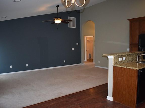 Hunters Crossing, The Emerson. Beautiful open floor plan with 4 bedrooms and 2 full baths. Kitchen open to great room with granite counter tops, black appliances, large island with breakfast bar, vaulted ceilings, large windows and spacious dining area. Spacious wood privacy fenced backyard. Corner lot with rear service entrance.