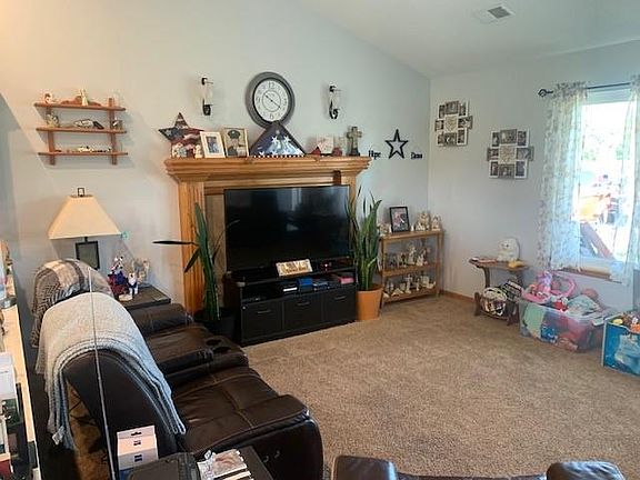 This is a one time buyer who bought it new. Second double car garage was added later as a shop. It's an all electric home Features a very open concept of the living room, dining room and kitchen. Acreage is all level.