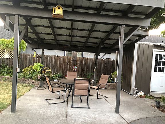 Lovely Kirk Chapman home on quiet Cul-de-sac in desirable Redwood Elementary school district. Exterior: Nicely landscape with auto sprinklers. New roof and fencing. Garage door has been replace and home was painted inside and out around 2017. Large backyard with 9 x 18 storage shed, hot tub, water feature and large covered patio great for BBQ and entertaining. Interior: Updated with new carpeting in all bedrooms, laminate vinyl flooring in main living area and hall. Kitchen has new sink and faucet, new Maytag Microwave/convection oven and amana dishwasher. Large side by side SS fridge with ice/water dispenser. Large Master has upgraded crown molding, outside access to hot tub, newly installed waterproof flooring in bath, upgraded shower doors faucets and shower head with filter system. Higher toilets, Walk in closet . Other features include: Pantry, laundry room and 2 car garage with work bench. Also willing to sell most furniture and garden tools. Great for investors. willing to sell with all appliances and furniture. Turn key. Fast closing.