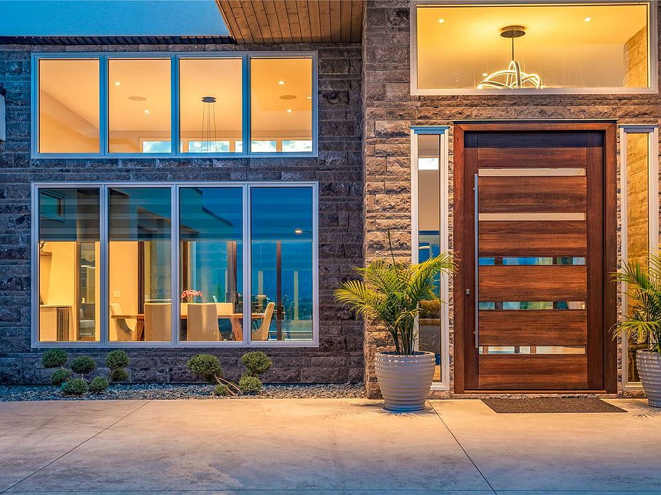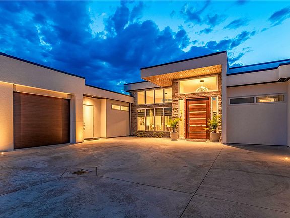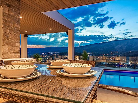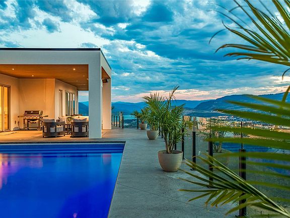 One-of-a-kind ~ over 4500 sqft of gorgeous living space on ONE floor!! Plus the BEST carriage home ever. This custom-built rancher sits on a private .62 acre, overlooking the city, the hills, & the lake. No expense was spared ~ high caliber finishing throughout the home, garages, & carriage home! Open concept living space, 14 ft ceilings, a wall of windows, with Kolby easy-glide patio doors connecting the indoor & outdoor living spaces. Acrylic white cabinets, quartz countertops, huge island, butler pantry, wine bar, pass-through window from kitchen to outdoor dining. Sleek modern fireplace in living room. Sonos sound inside & out. Each of the 4 bedrooms has its own ensuite. Luxurious primary suite has its own laundry in huge walk-in closet, heated bath floor. 16x30 UV pool, with an outdoor bath & ample lounging space. 3 bay & 2 bay garages, EV parking & room for boat. Full RV hookups. 1 bed 1 bath spacious carriage home with its own laundry & private patio. See supplement for more detailed information!