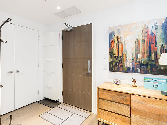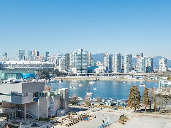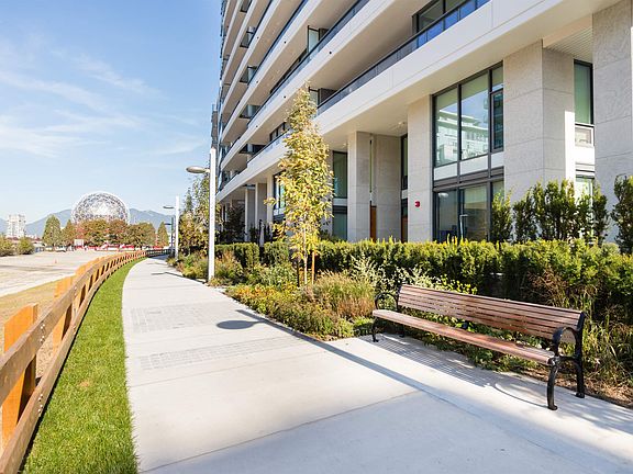 Wow! Rarely available forever protected water view where your front yard just happens to be the city park! A Modern Luxury home at Concert's latest signature building in Vancouver's False Creek/Olympic Village neighbourhood. Extra spacious 2 Bed + 2 Bath + Flex. Premium kitchen furnished with contemporary custom waterfall kitchen counter and high gloss cabinetry. 2 parking spots with one futureproofed EV and 2 extra large storage lockers. Live in one of Vancouver's most vibrant and convenient locations, only steps away from Skytrain and only minutes away from downtown. Rooftop garden, private lounge, fitness centre and top concierge services. Wake up to morning yoga or invite friends over for wine night on your very own massive patio. Welcome to the good life Welcome to your future home.