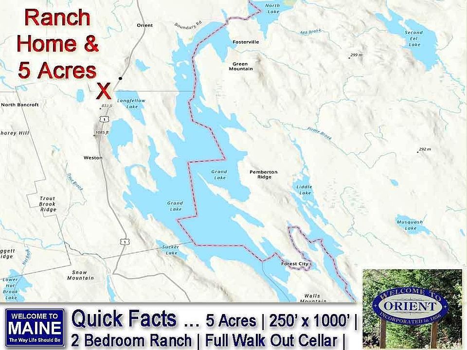 Maine, You Need A Home, One With Only A Single Floor. Two Bedrooms Is Fine.. Got It. Land Around Your Home, Five Acres Works Just Fine Right? The Lot 250' On US RT 1, 1000' Deep. The Location Is One Rich With Lakes. East Grand Lake, Deering, Brackett, Faulkner, North Lakes And More! Million Dollar View Region Is Ideal For Recreation Trails. The Cedar Shingled Ranch Style Home Is 960' Square Feet. All The Interior Painted Light Blue.