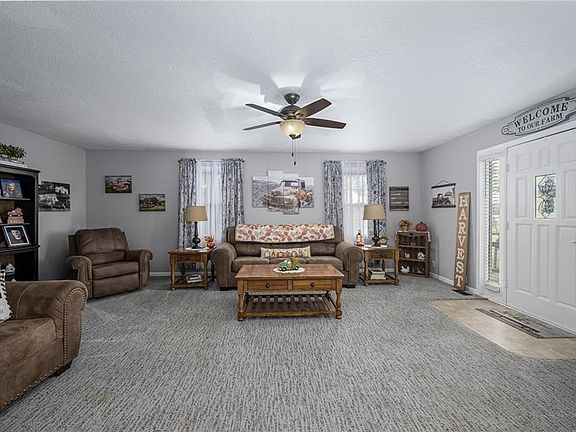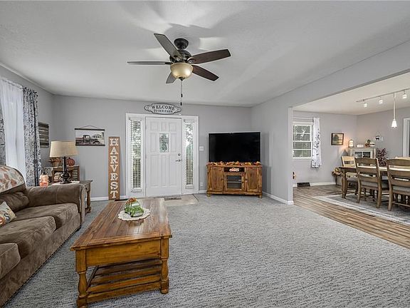 COUNTRY LIVING WITH AMAZING VIEWS! This 3-bedroom ranch on 2.77 acres offers space, comfort, and a great setting. Enjoy an eat-in kitchen with tile floors and all appliances included, plus a large formal dining room perfect for gatherings. The spacious living room leads to a generous master suite with his and her closets and a private bath with shower. The finished basement expands your living options with a rec/family room, den, and 3rd bedroom. Outdoors, you’ll love the large deck for entertaining, a fenced yard for pets or kids, and a detached 2-car garage. Great corner lot location with plenty of room to spread out and take in the views!
