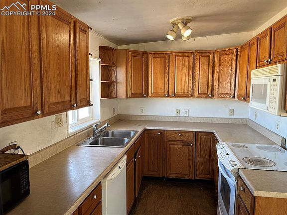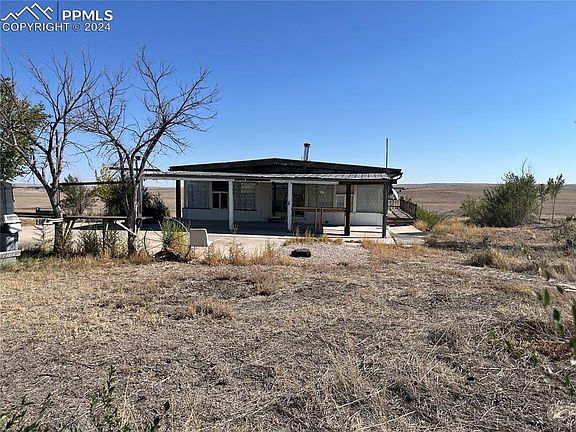 A home for a rural Colorado life! A fixer-upper in need of some quality TLC. 2508 sq. ft. home on 37 acres suitable for livestock with a well and septic tank, recently inspected. A new furnace was installed in January 2025. Beautiful rolling hills and mountain view. 738 sq ft wooden decks with 495 sq ft covered porch. There are two detached storage sheds and a full RV Parking on a cement pad.