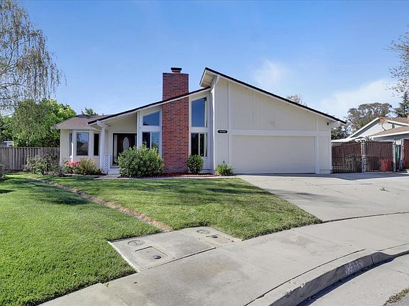 Beautiful single-family home with upgrades throughout! This property is situated in a tranquil, family-friendly cul-de-sac surrounded by San Joses foothills. The homes angled roof, brick chimney, and large windows add to its charming curb appeal. The entrance leads you into a spacious common area with tile flooring. The step-down living rooms plush carpeting, high ceilings, and brick fireplace make it a great space for relaxing. The kitchen has beautiful marble counters and a tile backsplash, along with recently upgraded stainless steel appliances, including a 4-burner gas stovetop. The lush backyard is surrounded by trees and has a lovely side porch with a white lattice fence, pergola & RV parking. The flooring and bathrooms in the home were upgraded in 2020, making this a low-maintenance purchase. Schedule your showing to see this chic home today!