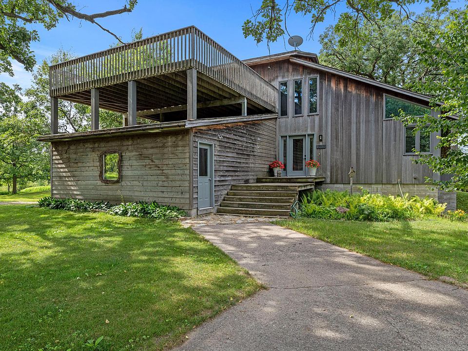 Custom Built walk out Modified two story on over 12 acres with approximately 750’ of frontage on a 40+ acre Pond/lake. Wildlife and Privacy is what this property has to offer-along with a 1600 sq ft shop that’s heated, insulated, 400 amp service and a 10 ft ceiling. Siding on the buildings are Redwood and Cedar that give it that Up-North feel. Just a few of the features on the home include: An indoor Balcony with wrought iron railing trimmed in Maple overlooking the great room with a white washed vaulted ceiling, Pendant lighting, large boxed window, and trapezoid windows, Main floor primary bedroom with a large picture window, vaulted ceiling, Walk in closet, walk thru primary bath with corner shower and whirlpool tub, 4.5 ft wide staircase up to the open Studio/ future bedroom, office with a bay window, full bath with whirlpool tub, 2nd bedroom and studio walk out to a catwalk to the 22x24 roof top deck! Please see supplements for additional features!!!
