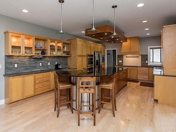 This executive 1.5 story home in Verona Hills does not disappoint. The 5 BR, walk-out home sits on a cul-de-sac lot. Main level features vaulted ceiling LR with stacked stone surround fireplace, wall of windows allowing tons of natural daylight in to the home, formal DR,office with built-ins, large mudroom with lockers, and laundry room with sink. Amazing kitchen with huge granite island and SS appliances opens to eat-in dining area. The master suite has a great view, jet tub, tile shower, and his & hers walk-in closets. The open stair-way leads to the 2nd level which includes 3 BR, 2 adj with a full jack/jill BA and the 3rd with itâEUR(tm)s own ¾ BA, and a balcony view of the LR. The finished w/o bsmt has a FR with fireplace, enormous wet bar, 5thBR, BA, exercise room, wine cellar, rec space and 2 storage rooms.The backyard has a composite deck, paver patio with firepit area, playset, and views of tree lined rear yard.Irrig, whole home ss, sec system and cent vac are included with home.