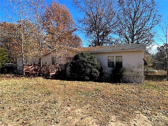 Rare find 20 minutes from Bentonville. Mobile Home (on foundation) on 5 beautiful acres (wooded and cleared). Private setting down a dirt road for appox 1/2 mile off Hwy 102. Fenced. New roof 2023. Vacant. Personal car (Red) will, if not already, be removed. Gate is locked as neighbor's horse have access (at this time).