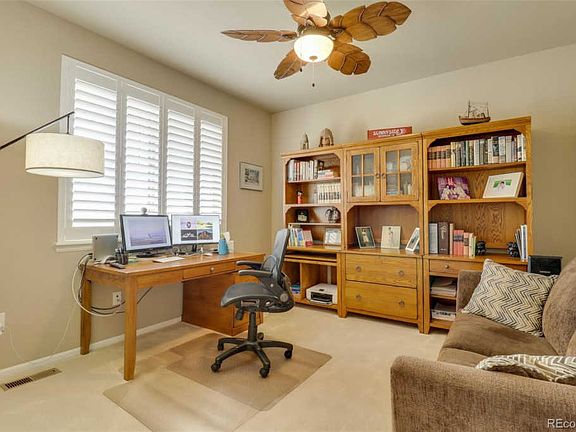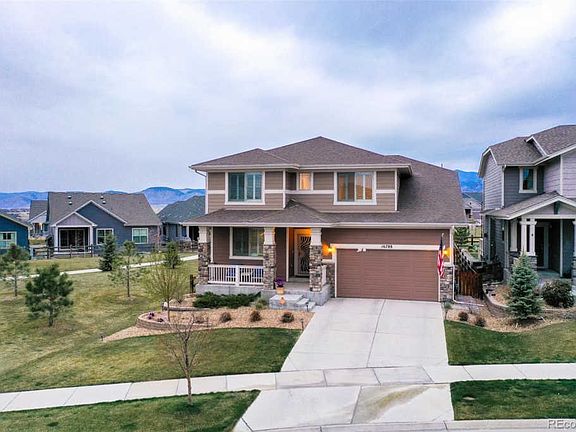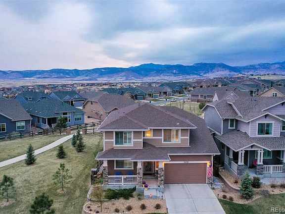 This is the home you've been waiting for! Featuring gorgeous views of both the mountains and city lights and adjacent to Daybreak Park, this home was thoughtfully designed and upgraded in all the right places. The main floor features a private office with French doors, dining room, laundry, and an open-concept for the family room and eat-in kitchen. The gourmet kitchen is complete with stainless steel appliances, granite countertops, farm sink, 5 burner gas cook-top with hood vent, soft-close cabinets, pantry, kitchen island, and breakfast nook (refrigerator negotiable). A cozy fireplace and 2 stories of windows complete the family room and the spacious dining room includes a bay window with amazing views of the city. Enjoy Colorado living at its finest when you step out from the kitchen to your back patio. This space is an entertainer's dream! Not only is there a view of the mountains but with a deck and stamped concrete patio, there's plenty of space for all your guests. It also includes all of the furniture on the lower level, the bar height chairs from the upper level, and maintenance free, dog-friendly, artificial turf (other patio furniture is negotiable). Upstairs, the upgrades and beauty continue. The primary suite features a 5-piece bath with soaking tub and walk-in closet. 2 additional bedrooms, including 1 with an en-suite bath, and a spacious loft, perfect for the kids or another office, round out the upstairs space. The basement was upgraded to include 9 foot ceilings and has been partially finished that includes space for a home gym, a yoga or workout studio, and a half-bath that could easily be converted to a full one. Take advantage of the unfinished space for storage or finish it to make it your own. You'll be impressed with all of the features, including remote-controlled blinds or plantation shutters throughout, and how meticulously the owners have maintained this home. This home has it all!