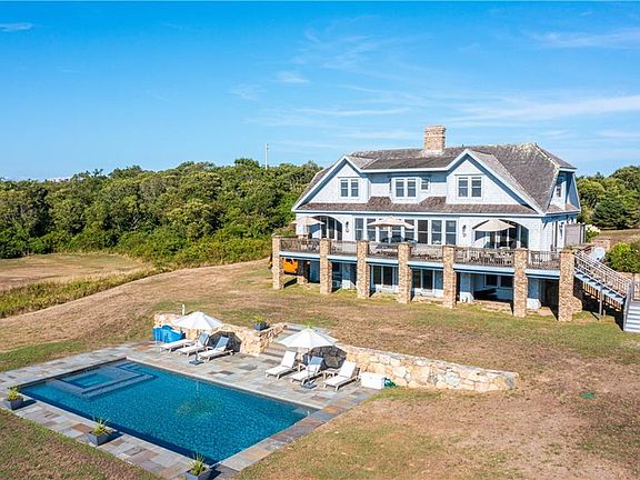 Overlooking Block Island Sound, with views to Montauk and both CT/RI shorelines, this exquisite, shingled styled home off Beacon Hill Road offers a light-filled, open living plan that captures the best of Block Island. Impeccably maintained, this home has spectacular, ocean and sunset views from every room. The custom interior shows attention to every detail for an attractive living space. The spacious living room has an impressive stone fireplace and wall of windows for ocean breezes and light. The dining room features an amazing chandelier. The gourmet kitchen, with all modern appliances, has a large island for meal preparation. Adjacent to the living room is an office/guest bedroom with full bath. Rounding out the first floor is a pleasant entry and half bath. On the second level, the gracious master bedroom/bath suite is accessed off a seating area with full bath. Three additional bedrooms, full bath and laundry room complete the picture. Lower level is set up for family enjoyment with a TV and Ping Pong table with French doors to the pool and half bath. A garage/storage area for bikes, beaching gear and car are on lower level. The ambiance continues outside with ample decking spanning the entire length of the house - perfect for entertaining, outdoor dining and grilling. Step down from the deck to enjoy the in-ground salt water pool and hot tub. This thoughtfully appointed home is the epitome of what a vacation home should be: relaxed, fun and a joy to live in.