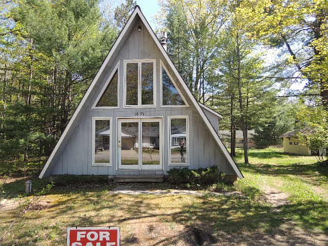 Single Family Home for sale by owner in Gaylord, MI 49735. This cute and cozy A-frame features hardwood floors and knotty pine paneling all throughout. It's 900 square feet of living area includes 2 bedrooms and 1 bath. The whirlpool tub in the 1st floor bedroom is great for relaxing after a day of snowmobiling or skiing. The loft can easily be a second bedroom and also includes a storage area. An in-floor hot water heat system helps keep your feet warm on cold winter days, and the fireplace can provide a ski lodge-like atmosphere when one is desired. No need to haul laundry to a laundromat anymore because this home includes a stackable washer and dryer. Sitting out back on the deck or around the backyard fire pit makes for an enjoyable summer evening. The backyard also includes a 6x12 storage shed. The home sits on a 50x100ft wooded lot, so no need to worry about yard work cutting into play time. Additional features include: well; septic; close to snowmobile trails, cross-country ski trails, and downhill ski
