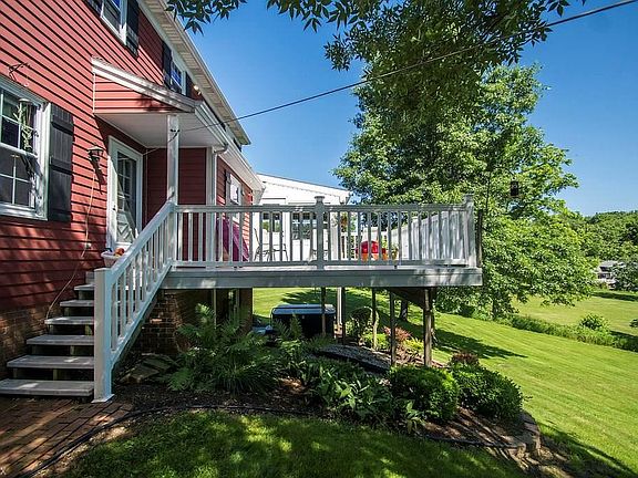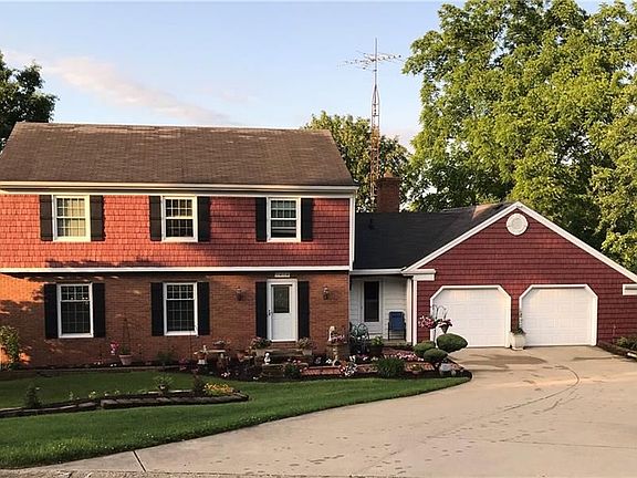 Well maintained solid 2 story with 4-5 bedrooms, 3 1/2 baths located on a cul-de-sac with a beautiful landscaped island. This tastefully decorated home has a first floor laundry, open concept family room with gas fireplace, newer cherry Medalian cabinetry in kitchen with built in china cupboard, under counter lighting, spice cabinet, appliance garage and Corian countertops. The first floor also boast a spacious dining room with hardwood flooring that leads to a 3 season sunroom, living room with custom curtains and a 1/2 bath with quartz countertop. The 2nd floor consists of a large master suite with his and her closets and laundry chute, updated full baths with his and her sinks with granite countertops and cherry cabinetry and 2-3 additional bedrooms. Lower walk-out level could possibly be an in law suite as it contains a rec room or additional bedroom and a full bath with ceramic flooring. Plus there is a 2 car attached garage and a 2 car detached garage all located on .93 of an acre. Gorgeous views from maintenance free back deck finish this complete package.