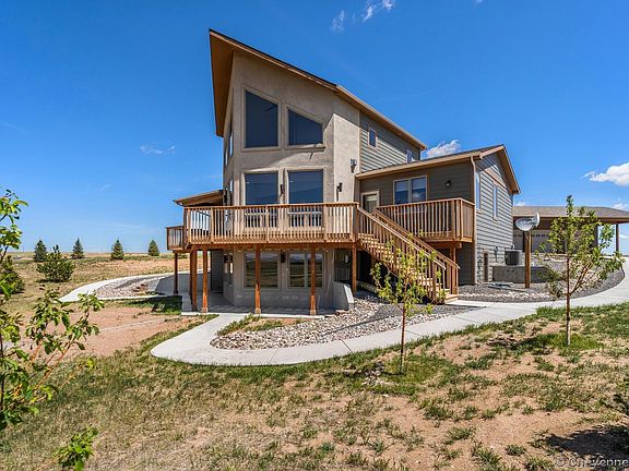 Stunning custom dream home with beautiful landscaping, on over 8 acres just west of Cheyenne with incredible views of the Rocky Mountains, it borders 100's of acres of public/private land. This beautiful home is nearly new construction and boasts so many upgrades: hardwood floors & trim, heated basement bathroom floors, plenty of deck & patio space. Vaulted ceiling’s with scenic views, a finished walkout basement, a 3 car garage & 6 car oversized heated garage bays with bath for vehicles, toys & equipment. Call today to schedule a tour!