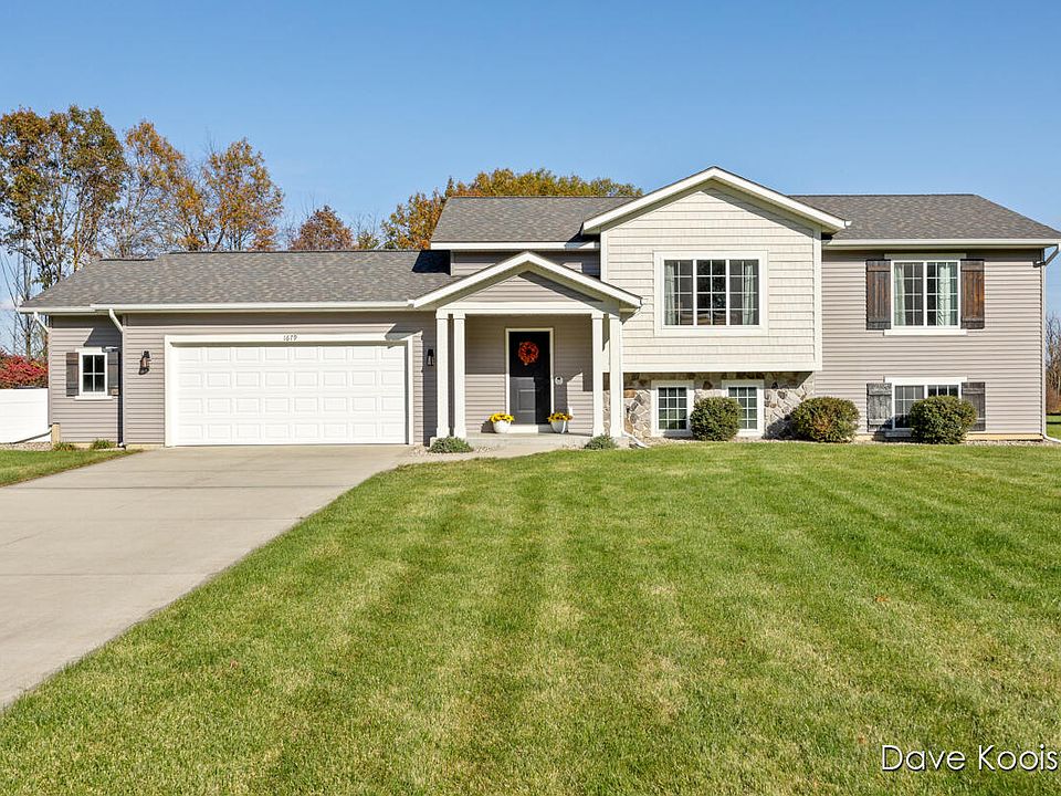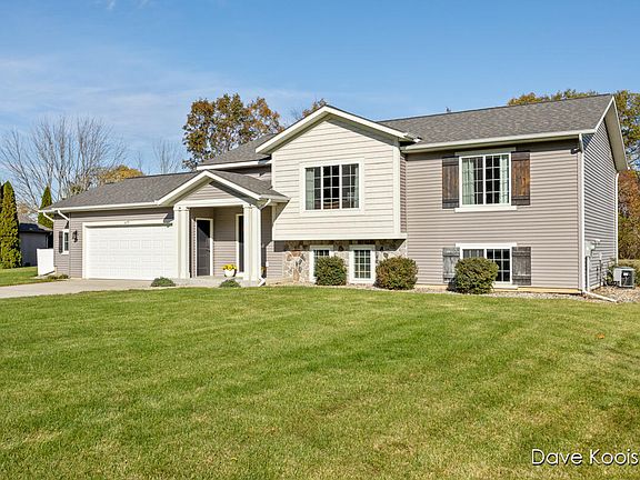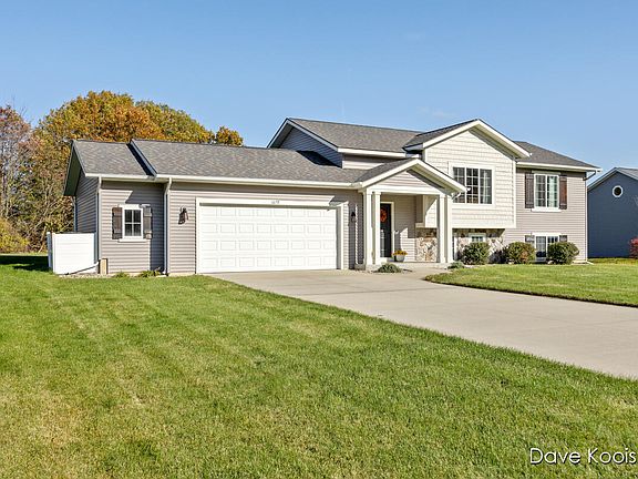 Come experience this 6 year old raised ranch home that sets on almost 1 acre on a cul de sac. Timeless neutral colors both inside and outside. Location is wonderful on a nice quiet lot with no neighbors behind or directly in front of the home. Large well manicured yard requires very little maintenance with underground sprinklers and landscape rocks instead of wood chips. The floorplan features a very well thought out use of space with lofted cathedral ceilings through the open living room, kitchen, and dining room. The kitchen has a ton of cabinets including a center island with a snack bar, granite countertops, white subway tile backsplash, all stainless steel appliances included, plus a large walk in pantry. This is open to a large expandable dining area with sliding glass doors t o the deck and stairs to the expansive backyard. Living room is carpeted and has massive windows looking over the front yard and an arched niche opening to the stairway. Main floor is host to the master bedroom with a walk in closet, the second bedroom, and bathroom with granite countertops, tile backsplash, and tub surround shower. Daylight lower level has been recently finished and into an enormous living room and a second full bathroom with a laundry room too. The end of the recreation room could easily have a wall built to serve as a third bedroom. There is unfinished space with ingress/egress that could be finished to a 4th bedroom if needed. The 2 stall garage is deep plus it has an extra half stall in width giving you ample storage and parking space. The fence off to the side is a nice place to hide refuse and recycle containers. COME SEE IT TODAY!!!