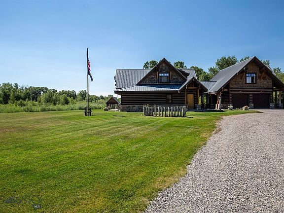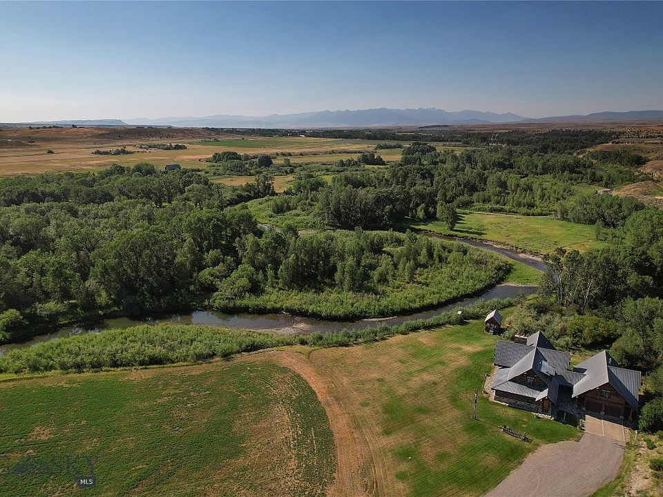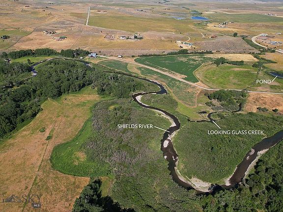 A private river retreat with 50-acres and a beautifully appointed custom home is the quintessential Montana getaway. The home is situated on the western edge of the property, creating privacy and proximity to hear and see the water. Approximately 2600 feet of the Shields River form the south boundary with the confluence of Looking Glass Spring Creek. The 3B home is well-suited for seasonal family gatherings or year-round living. The main floor features a primary suite with gas fireplace & vaulted ceiling, kitchen/living/dining with wood fireplace and two story windows, office, laundry, full bath & additional bedroom. The upper level has an open loft with beds, full bath, and another bedroom/office. The detached 2+ car garage is heated with an upper level guest apartment with kitchenette, gas stove, 3/4 bath and open living area. Additional amenities include a detached screen porch to enjoy summer evenings, a grainery converted for storage, ~20AC alfalfa, pastures, and spring fed pond.
