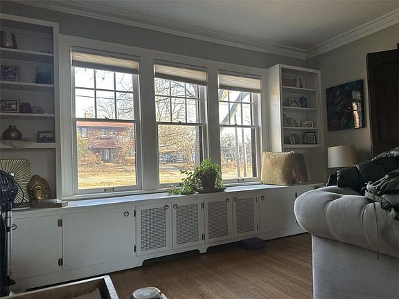 This stunning Tudor-style home sits gracefully on a corner lot, framed by a classic black iron fence with a private gate leading to the backyard. Step inside through a quaint foyer that opens into a gorgeous hallway, guiding you to a spacious living room featuring a beautiful fireplace and custom cabinetry along two walls — perfect for relaxing or entertaining. Adjacent to the living room is a versatile space with its own outside entry, ideal for a home office, library, or exercise room. Off the main hall, you’ll find a lovely formal dining room accented with solid bi-fold doors. The kitchen boasts a stylish backsplash and opens to a cozy breakfast room, creating a warm and welcoming flow for daily living. Upstairs, the master suite impresses with a remodeled private bath, abundant natural light, and an oversized walk-in closet with built-in cabinetry. Two additional bedrooms offer generous closet space, while the main bathroom is currently under renovation—soon to be a beautifully finished retreat. The third level provides a private bedroom and bath, perfect for guests or extended family. The open basement includes a laundry area, multiple large closets, and plenty of storage or workshop space. Outside, a gated driveway leads to a two-car detached garage. With hardwood floors throughout, abundant built-ins, and a back foyer featuring extra storage cabinets, this home blends timeless elegance with everyday comfort. From the inviting curb appeal to the rich, welcoming interior, this Tudor exudes character, charm, and warmth at every turn. (Improvements – contemporary lighting ceiling fans, new refrigerator, replacement windows 3 level except one, new shut off valves, new heating system) Main bathroom on upper floor in progress of being totaling remodeled