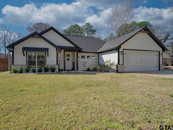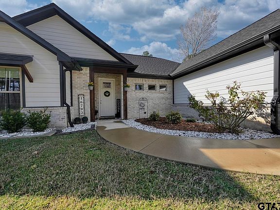 Welcome to your lakeside sanctuary! This immaculately maintained 3-bedroom, 2-bathroom home offers serene water views of Lake Tyler and grants access to a community boat ramp, perfect for those who cherish outdoor recreation and lake living. As you step inside, you'll be greeted by an abundance of natural light that floods the open floor plan, accentuating the elegant features of this home. The chef's kitchen is a culinary delight, boasting a large island, granite countertops, and stainless steel appliances, making meal preparation a breeze. The spacious living area features vaulted ceilings and a fireplace, creating a tranquil ambiance for relaxation and entertainment alike. Step into the split owner's suite, offering privacy and comfort with its attached bath, providing a serene retreat after a day spent on the lake. This home is designed for both luxury and practicality, featuring hard floors throughout for easy maintenance, ensuring durability and timeless appeal. Step outside to the expansive patio, where you'll find the perfect setting for outdoor gatherings and al fresco dining. The fully fenced yard, complete with an 8-foot privacy fence, offers a safe and secluded space for pets and children to play. Additionally, the sprinkler system ensures the lush greenery of the landscape remains vibrant year-round, enhancing the beauty of the surroundings. Located in a coveted lakeside community, this home offers the perfect blend of tranquility and convenience, with easy access to outdoor activities and urban amenities. Don't miss out on the opportunity to make this lakeside retreat your forever home!