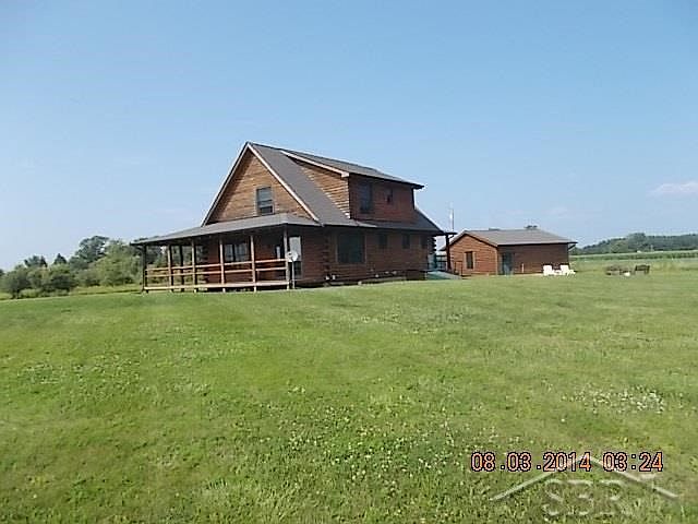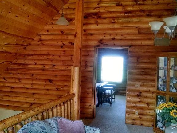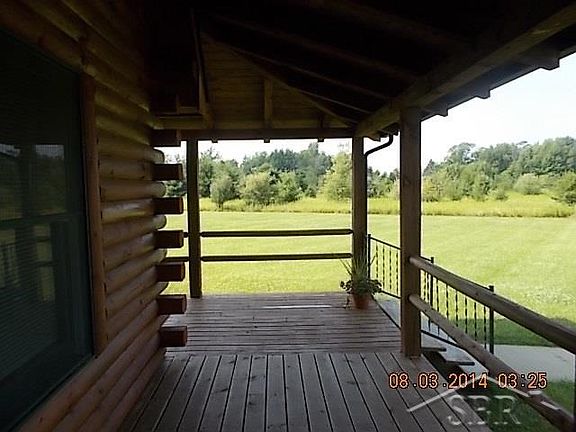 Country Living at it's best!! Immaculate Log Home with wrap around porch on ten acres. Very private sett of the road with wooded back yard. Sitting room on second floor could be a third bedroom. Basement partially finished. Deer and Turkey play ground...