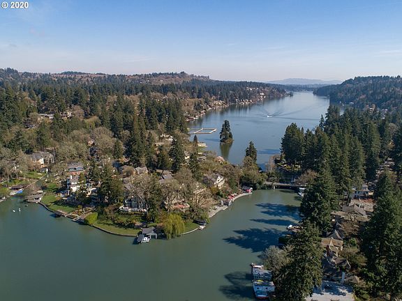 Thoughtfully designed and beautifully modernized, you’ll appreciate the hard to find style and comfort evident in every detail of this exceptional waterfront property. The gracious entry welcomes you home to gleaming hardwoods, soaring ceilings and walls of windows to create a warm and inviting home backlit by sunshine and the sparkling lake. The main level boasts vast entertaining spaces including a gourmet kitchen featuring custom cabinetry, gorgeous slab granite, a convenient island, top grade appliances, and a cozy eating nook. The picturesque master suite flaunts tasteful finishes, extensive built-ins, a luxurious bath, striking vaulted ceilings and immense windows flooding the room with natural light and unencumbered lake views. After a long day of boating, enjoy an evening cocktail from one of the sprawling patios in your backyard oasis amongst the lushly landscaped grounds with an exquisite water fall displaying color and soothing hums year round. With Downtown Lake Oswego just a five-minute boat ride away, one can effortlessly enjoy the boutiques, Movie Theater, restaurants, Saturday Market, library, cafes, parks, and more. The storybook aesthetic, the expansive lower level bonus room, the elegant millwork, the sturdy boathouse, and the premier location with over 100 feet of water frontage rounds out the list of reasons why this is the perfect home for every member of the family!
