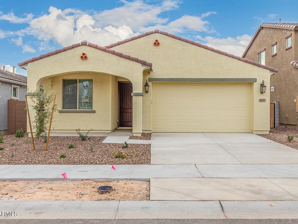 MLS#6637217 The Harlow in Paradisi Discovery is a meticulously crafted single-story haven, offering 4 bedrooms, 2.5 bathrooms, a 2-car garage, a study, and 1,960 sq ft of luxury living. The open layout seamlessly integrates the kitchen, casual dining, and gathering room, fostering a dynamic environment for socializing. The kitchen is a focal point, blending functionality and aesthetics to cater to culinary enthusiasts and serve as a hub for gatherings. The owner's suite boasts a spacious layout, a private bathroom with double sinks, a shower, and a generously sized walk-in closet. Adjacent, three secondary bedrooms provide comfort for family or guests, complemented by a shared bathroom The 2-car garage, accessible through the owner's entry, transcends its primary function. The Harlow epitomizes thoughtful design, offering a seamless blend of comfort and style - a sanctuary where every aspect is meticulously tailored to exceed expectations. Paradisi Encore offers plenty of community amenities including a resort-style pool, clubhouse, fitness facility, playground, game courts, trails, and more! Design enhancements feature whole house window covering, appliances,, flooring, backsplash and base boards. Structural options added include: 8' interior doors, alternate kitchen, bath 2 shower, and gas line for future outdoor kitchen.