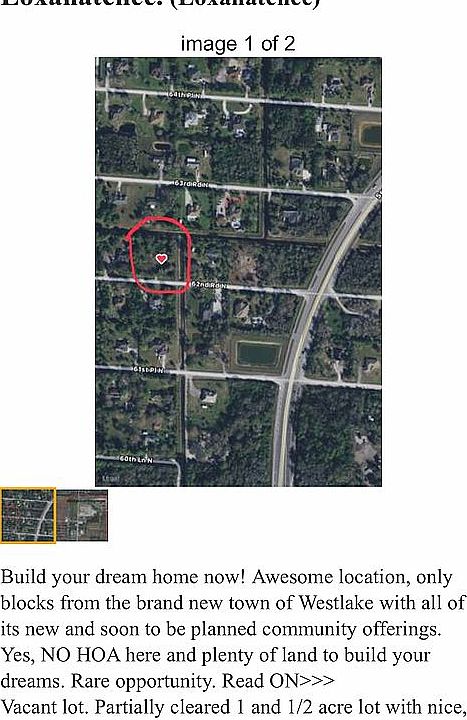 Rare Opportunity, majority of county required new construction impact fees have already been paid, saving you a minimum of $10,000.00 off the cost to build vs other available vacant build lots in the area. Seller may consider terms (seller finance/contract for deed) to the right buyer with substantial money down. Terms to be negotiated based around what you have to work with. One of the very best lots in Loxahatchee, plenty of room and located just right. Build your dream home now! Awesome location, only blocks from the brand new town of Westlake with all of its new and soon to be planned community offerings. Yes, NO HOA here and plenty of land to build your dreams. Rare opportunity. Read ON>>> Vacant lot. Partially cleared 1 and 1/2 acre lot with nice, small, pond. Wonderful opportunity to grab this ready to go lot. Previous home was removed and therefore a good majority of the impact fees have been paid, saving you easily 10K PLUS. Not to mention the lot is very dry and partially built up and prepped for building your dream property. New homes in the area are going for well over 500K. Act Fast!!