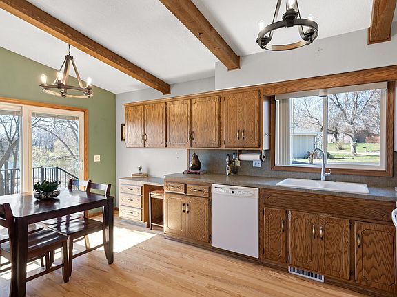 Updated walkout rambler on a .45 acre site overlooking Blind Lake! Vaulted main level gathering spaces feature kitchen, informal dining & living room with wood ceiling beams, hardwood floors + 3 beds & 2 baths. Finished lower level has an office/den, 3/4 bath, storage, laundry/mechanical space & large family room with a gas fireplace. 2020 Timberline roof & owners ¾ tile bath. 2021 maintenance free deck. Nov. 2022 driveway. Newer windows (except garage window) & patio doors. Fenced back yard, shed & large lot. Enjoy wildlife & picturesque views of the lake. Lovingly maintained by original owners. Prior Lake Schools. Great location!