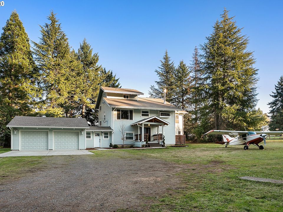 Discover this 2 acre private sanctuary w/ its own RUNWAY! Bring your plane to park in the hanger or use it as a shop w/ its own office. Full mother in law w/ separate kitchen on LL. Beautiful level acreage! Gather & relax in multiple living areas. New siding, paint, windows, decks. Generous kitchen w/ actual wood stove for cooking open to family rm w/ vaulted ceilings. 2 FP, Master suite w/ Sauna, WIC. A/C, hot tub