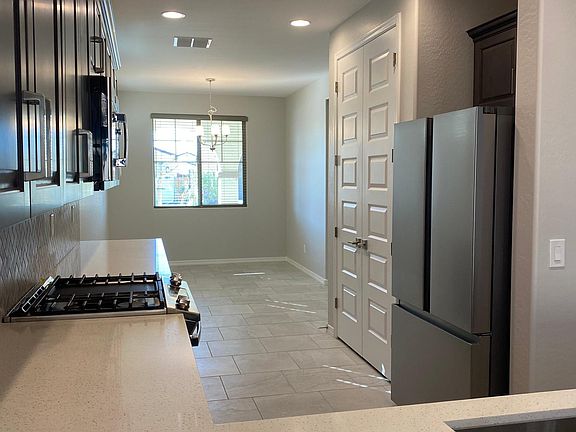 3 bedroom, 2 bathrooms, a study, and 2 car garage house available for rent. This new single-story 1,832 square feet home features a spacious family room, 2 dining areas, refrigerator, washer, dryer, and ceiling fans in all rooms. The master bedroom has an en suite with double sinks, super shower, and large walk-in closet. Upgraded design options include: paver front porch, driveway, entry walks, and extended back patio; upgraded finishes (floor tile, kitchen backsplash, and cabinets with quartz countertops in the kitchen and master bedroom); and reverse osmosis system. Backyard features low maintenance landscaping, including artificial turf.