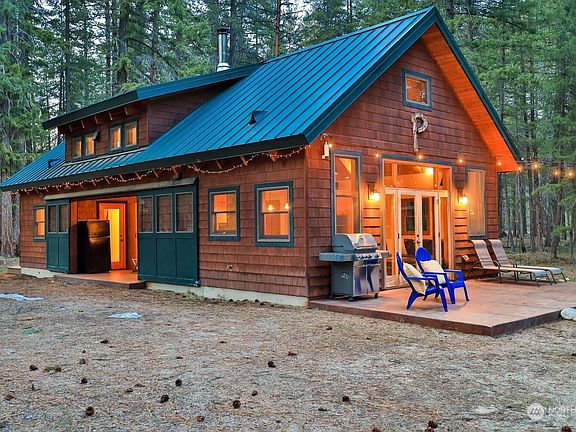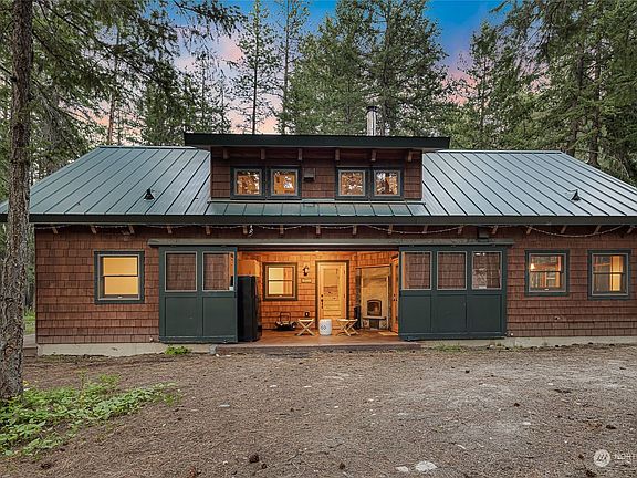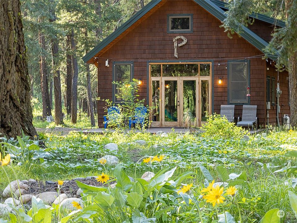 River Road Custom Home offering over 1,600 sq. feet, 3 bedrooms, large loft with built-in bunks & 1.5 bathrooms. This floorpan is designed to incorporate both indoor & outdoor living utilizing all spaces. Amenities include radiant-heat concrete floors on main floor, hardwood floors upstairs, indoor/outdoor patio with dual-sided soapstone fireplace & retractable screen doors, vaulted ceilings with timber-frame styling, open loft, & custom built-ins throughout. Located on 1.62 timbered acres with 109+/- feet of medium-banked frontage on the Wenatchee River. Built in dining nook, soapstone counters, French doors leading to stamped concrete patio facing the River. Lots of natural light, hot tub, additional utility room with storage & Laundry.
