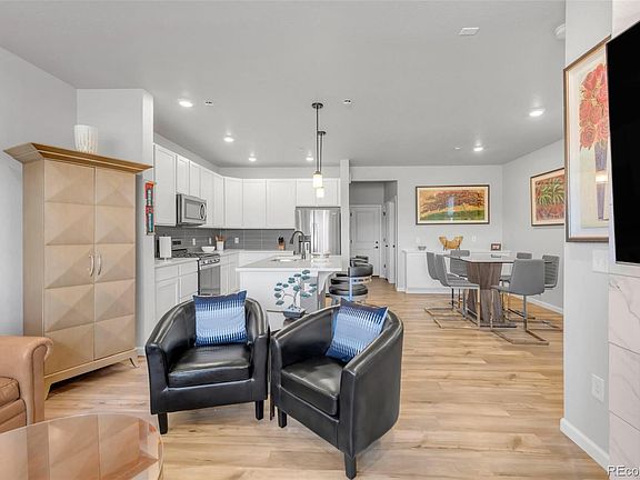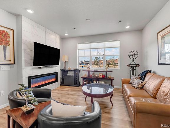 Beautiful Luxury townhome in Erie. Check out this newer townhome nestled in a quiet and newer neighborhood in Erie Commons. Inside, you'll enjoy an open and spacious layout, with many upgrades thru out! The property boasts fabulous natural light, and a chef's kitchen complete with a large island, stainless appliances and gleaming granite countertops. There's also an ungrade of built in shelves and counter space in the dining for storage and serving large meals. A welcoming living room with a cozy electric fireplace for those chilly winter nights and movie nights. Rounding out the main level is a powder bath for guests and your attached, two-car garage. Upstairs, you'll discover the primary bedroom with a massive, five-piece ensuite bath, along with a walk-in closet and a private deck with breathtaking mountain views. (West Facing). This level also includes two more generous bedrooms and a shared bath, plus a convenient laundry room. Beyond home, be sure to check out the sparkling community pool and clubhouse (apart of HOA), easy access to tons of trails, and Brigg's Street restaurants, cafes and shops less than a mile away. Welcome home!