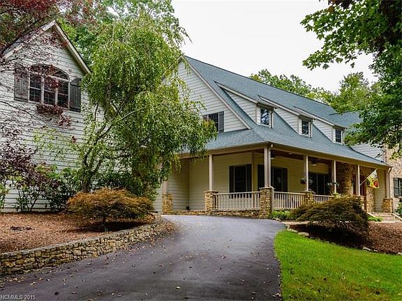 Exquisite magazine-featured Southern custom home! 10 minutes to Asheville. Quality construction, gorgeous finishes & lots of privacy on 4 LEVEL acres (rare) in equestrian paradise. Enjoy cooking in gourmet kitchen w/granite, 2 fridges, 2 dishwashers, gas stove, etc. Enjoy the outdoors year-round w/screened-in porch, water fall/pond, stone exterior & walking trails. 5-car garage/workshop. Lease Purchase Option available.