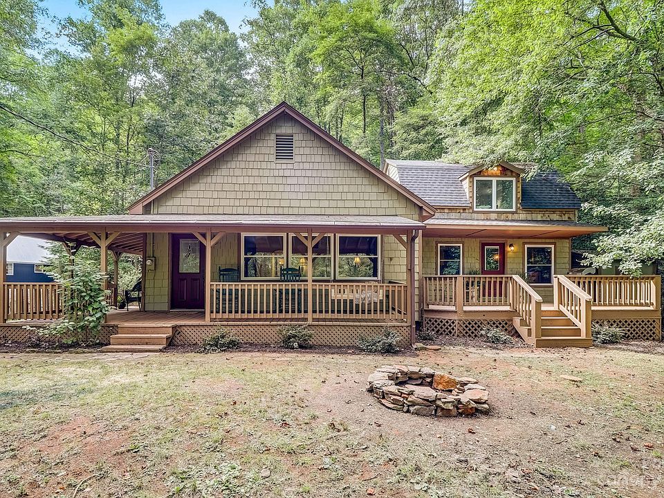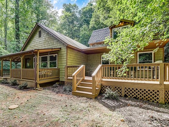 Storybook Living in the Mountains at 168 Bedrock Lane! Step into the enchantment of this fully furnished 3-bed, 2-bath mountain cottage, reminiscent of a whimsical English retreat. Nestled amidst a picturesque wooded backdrop, this charming haven has been thoughtfully updated to offer modern comforts while retaining its fairytale appeal. From the inviting wrap-around porches to the spacious deck and outdoor chimney, this property offers endless opportunities for al fresco dining, creative transformations, and outdoor entertaining. Inside, you'll find a well-appointed home with ample storage and cozy hideaways. The split floor plan ensures privacy and tranquility in every sleeping space. Don't miss the chance to make this enchanting retreat your own! Adjacent property (182 Bedrock) is also available for sale, offering the option to purchase both homes together. Conveniently located between Sylva and Bryson City.