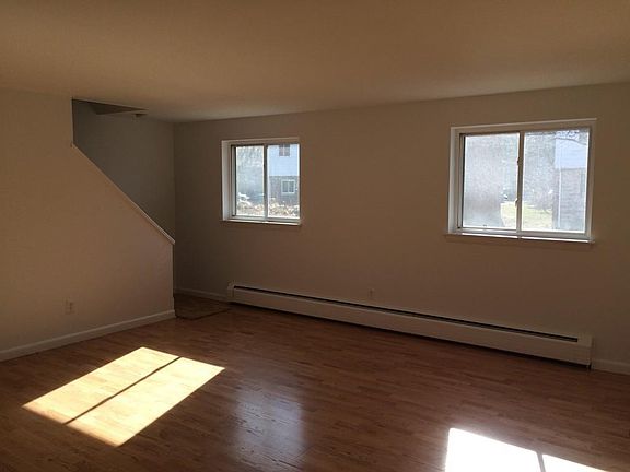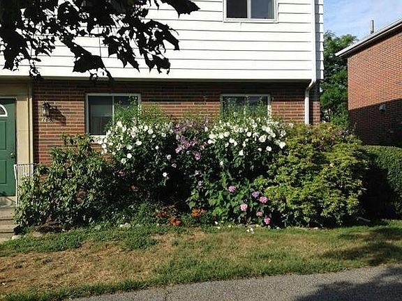 Sun-filled and charming 3 BDRM townhouse located at Bishop Terrace Condominiums. Choice end unit with garden views. Newly installed wood floors on first level. Gleaming updated kitchen with pantry. Brand new glass top range and newer Bosch dishwasher. Three just carpeted second floor bedrooms each with ceiling fans and ample closet space. Attractive and bright tiled bathroom and adjacent linen closet. Large two room basement with built-in cabinets and shelving, plus large separate lighted storage closet. Parking includes 2 spaces (1deeded),plus 2 visitor permits. Swimming pool on premises. Spotless and in move-in condition.