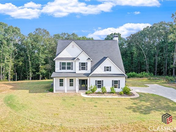This gorgeous 4-bedroom, 2.5-bathroom charmer is found in the Hawks Landing community on 10 acres. A stunning entryway, hardwood floors in the foyer, kitchen and living spaces, an open floor plan, neutral finishes, craftsman trim package, and a wood burning fireplace in the living room are all noteworthy. The kitchen boasts an attractive island layout, custom cabinetry, quartz counters, stainless steel appliances, and a pantry. The master bedroom includes a private bath with a double vanity, tile shower, separate tub, water closet and a walk-in closet. The other three bedrooms are situated above the ground floor as well for added convenience. The attached two-car garage includes a built-in work bench and shelving. The exterior features include covered front and back porches, large private back yard, and Clouds Creek frontage. Your family will love the large community lake and nature trails. Tucked away on a pleasant street, this home is just 25 minutes from downtown Athens and the University of Georgia.