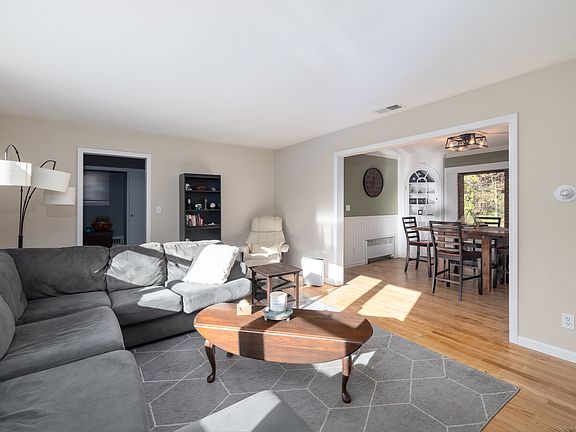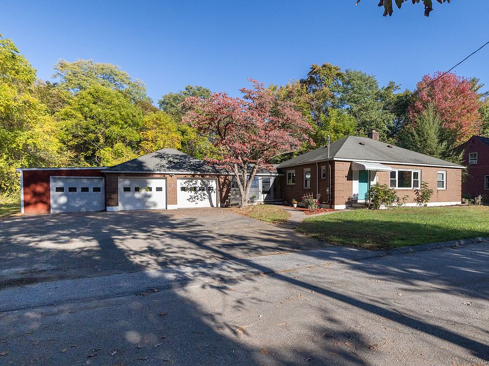 This well-kept brick ranch sits on just over an acre at the end of a dead-end street, offering a quiet setting with plenty of usable space inside and out. It's a one-level layout with 2 bedrooms, 1.5 baths, with hardwood floors through all the main living areas, while the kitchen features easy-care vinyl plank flooring. Off the kitchen, there's an added storage area that works well as a pantry or utility space. The dining room has sliders that lead straight out to a back patio-great for simple outdoor meals or letting in some fresh air. Between the house and the attached two-car garage, there's a breezeway that makes a great drop zone for muddy boots, wet coats, or anything else you don't want tracked inside. There's also a added attached storage garage perfect for yard gear, tools, or overflow. The basement is large and unfinished, giving you room to spread out or store more without feeling cramped. Whether you're looking for your first place, a manageable home base, or a property you can grow into over time, this one has solid footing and practical features to work with.