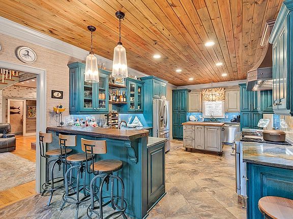 Located on over an ACRE with NO HOA, this beautiful, Lowcountry, luxury home in Pawleys Island must be seen in person to truly appreciate all it has to offer. From the gorgeous wood floors and soaring ceiling to the reclaimed wood on the walls, 168 Blue Ridge is artsy, eclectic, and filled with high-end appointments. The spacious dining room and living room are separated by an open fireplace that can be enjoyed on all four sides. The gourmet kitchen features beautiful custom cabinets, granite countertops, gas stove, double ovens, copper farm sink, a unique movable island, breakfast bar and office/sitting area. The main floor master suite features a walk-in closet, separate vanities, whirlpool tub, and large, walk-in glass block and tile shower. Also on the main floor are two bedrooms with a large shared bathroom with a double-sink vanity, the laundry room with extra storage and sink, plus two powder rooms. Up the center staircase is a cozy den/office with built-in shelves and access to the walk-in attic. On the other side of the home, an additional staircase leads to a huge bonus room/ man cave/ studio complete with kitchenette plus a very private 4th bedroom suite with full bath. Enjoy the great outdoors from the spacious screened porch and open deck overlooking the expansive backyard with plenty of room to add a pool. Hardiplank Exterior, NEW ROOF, NEW HVAC, and 2 NEW WATER HEATERS! Don't let this one get away. Come take a look today.