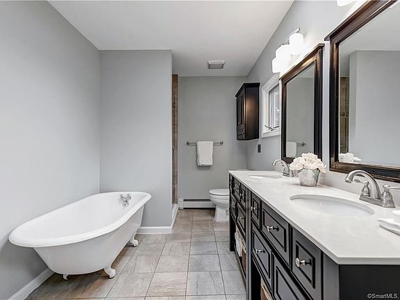 Welcome home to 168 Booth Hill Road. Fantastic, Nichols location, yet convenient to highways, shopping, dining, award winning schools, etc. Nothing to do but move in and enjoy all that Trumbull has to offer. This house has everything you need- 4 Bedrooms, 2 full baths, private office, first floor laundry, spacious family room with vaulted ceilings, 3 car detached garage. Flat private backyard with room for a pool! Incredible master suite with walk in dressing room - you have to see it to believe it! Gorgeous hardwood floors, recently painted throughout, newer mechanicals and so much more. Basement is water proofed and ready to be finished to add even more living space. Do not miss this special home! Two driveways! One on Oriole Lane with 3 car detached garage and one on Booth Hill Road. Walking distance to the Trumbull Farmers Market and Thrushwood Lake. Trumbull offers excellent schools and a wonderful array of amenities, parks, lakes, ponds, shopping and restaurants. Ideally located close to Merritt Pkwy, Routes 8 and 25 providing easy access to nearby towns and amenities. 65 miles to mid-town NYC, 20 miles to New Haven. New Central Air 2018 & Heating 2019, New Hot Water Tank 2018. Drive through this charming historic neighborhood to find a very special home. Enter between elegant white columns into a welcoming entrance hall. Take the steps up to a dramatic front-to-back FR with gleaming hardwood floor and high vaulted ceiling, flooded w/natural light from front, side and rear facing casement windows and French doors opening to an expansive rear deck. The super-efficient kitchen features SS Whirlpool appliances, maple cabinetry, granite counters, tile back-splash and floor, recessed lighting and triple front facing casement windows above a deep sink with brushed nickel single pull faucet. Enjoy family dinners in the elegant formal DR with 2 china/pantry cupboards, brushed nickel chandelier, triple side facing window and to the front yard. A cased opening from the dining room leads to a bright formal LR with side and rear facing windows. Also on the main level find an office with private entrance, laundry room and full bath. The upper level features a wonderful MBS with a large BR, fabulous fitted WIC/dressing room with bow window and a luxury bath. Full of light, it features a claw-foot tub, separate shower stall with over-head and hand held shower heads, floor-to-ceiling ceramic tile and frameless glass door. A double vanity with stained wood cabinetry with quartz counter and under-mounted porcelain bowls is illuminated with double vanity lights. All complemented with brushed nickel faucets, fixtures and fittings, 2 front facing windows and a skylight plus a convenient linen closet. 3 more bedrooms round out this level. There are warm, glowing hardwood floors throughout and the entire interior is freshly painted in a soft muted palette. Extras include an unfinished basement offering clean, dry storage and mechanicals and a surprising 3-car detached garage and rear driveway. The exceptional half-acre level property offers lush lawns, mature plantings and is edged with evergreens and shade trees. Trumbull offers excellent schools and a wonderful array of amenities, parks, lakes, ponds, shopping and restaurants. Ideally located close to Merritt Pkwy, Routes 8 and 25 providing easy access to nearby towns and amenities. 65 miles to mid-town NYC, 20 miles to New Haven. New Central Air 2018 & Heating 2019, New Hot Water Tank 2018.