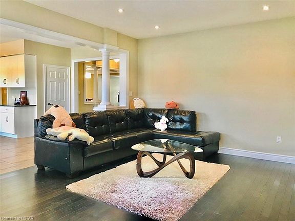 Absolutely huge family home in desirable North London. The home had Upgraded almost $140,000 when built. It boasts 4 good sized bedrooms on second floor, each bedroom with their own beautiful ensuite & walk-in closet. Office room and laundry room on upper stairs. Main floor has bright spacious kitchen with granite counters, corner pantry & soft close doors. Open concept big sized eating area, and 8-foot island provides all the space for entertaining family and friends. Family room with fireplace and tons of natural sunlight for enjoy the life. All levels have 9-foot high ceiling, premium hardwood floor in foyer, living room, dining room & family room, upgraded lighting & pot lights throughout. Great concrete patio with a metal pavilion in the back yard. Stone driveway, 9x9 insulated garage doors with windows. This home is stunning.