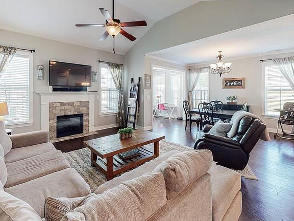 Awesome 4 bedroom 3 bath home with owners suite & 2 add'l bedrooms all on main level! Stone accents! Rocking chair front porch! Open floor plan! Living room w/vaulted ceiling, fan & fireplace! Fantastic kitchen! Island, breakfast bar, granite counter tops, tile backsplash, pantry built in microwave & frig stays! Spacious dining area! Sunroom! Owners suite w/ tray ceiling, bath w/dble sink vanity w/granite countertop, upgraded tile floor, shower & walk in closet w/dble hung space! Spacious spare bedrooms w/ceiling fans! Guest bath w/granite counter top & tile floor! Spare bedroom w/french doors also makes great office! 4th bedroom is huge w/sitting area. bathrm w/upgraded granite counter tops & tile floor plus separate heat/air & hot water heater! Laundry rm w/tile floor, cabinets & washer/dryer negotiable! Great walk in attic storage space! 2 car garage w/ storage room! Patio & privacy fenced backyard! Full sprinkler system! Plus HOA takes care of yard! Nearby Greeneway access!