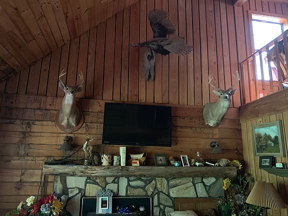 2 story log cabin on 25 acres 3br/2ba with bonus loft/game room wrap around porch 2 car carport above ground swimming pool with deck small barn, 2 stall building, and nice condo stand for hunting.