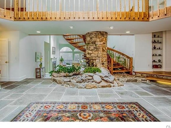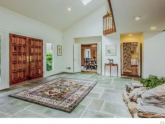 Welcome to Hidden Pond, a captivating contemporary with panoramic pond views from nearly every room. Walls of glass and vaulted ceilings make the home light and airy, as well as bringing in the serene outdoors. The deck runs the entire back of the house with access to many rooms on the main floor. Entertaining at it's finest! The large kitchen, with marble counters, is open to the family room with fieldstone fireplace. The main floor master suite offers French doors to the deck as well as a luxurious bath with pond views. There are 4 other spacious bedrooms, plus an apartment ideal for an in law or au pair. The walk out lower level offers a study and play room as well as expansive storage. Whole house generator and many other upgrades.