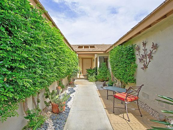 Curb appeal describes this desirable 200-Max Plan as you enter through the private, beautifully landscaped enclosed courtyard to your desert retreat. Once inside this spacious 2BD/2BA unit you have a breathtaking panoramic view of the golf course and mountains from entry, living room, dining room and kitchen. Living room boast vaulted ceilings and newer neutral tile. The kitchen features upgraded countertops, newer appliances, new lighting and new fan on ceiling. The bright airy atrium is meticulously landscaped, upper-head wood was replaced. Two master en-suites with exquisite remodeled shower including a skylight, two new toilets and custom countertops too. The back patio is an entertainers delight with extended neutral colored stamped concrete, endless stunning views of mountains; perfect for dining outside every night as you watch the sun set over San Jacinto mountain range. This is the desert lifestyle you've always wanted. Too many amenities to list, Call agent for more info.